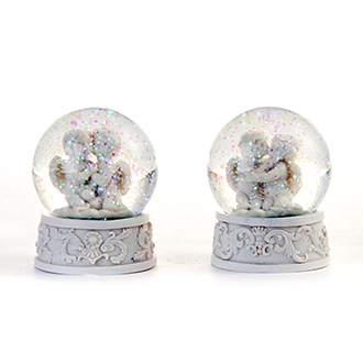 Engel, poly., hvid, i 65mm vandkuppel. 8CM, 2 ASS.