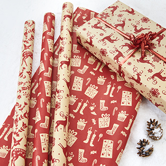 Gavepapir, Kraft, rød/creme,70cmx5m, 60gr. – 3 ASS.