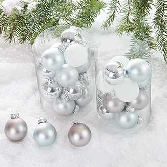 Glaskugler, ass. sølv & hvide – 4CM, 2 ASS., 16/ÆSK