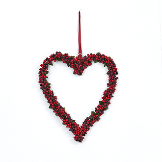Hjerte, med røde bær, med snor – 25CM