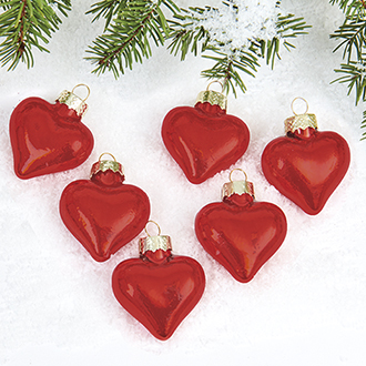Hjerter, glas, røde, mat – 8CM, 6/ÆSK