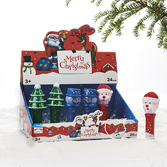 Julefigur, plast, med kul. lys&snor (BATTERI) i display – 13CM, 3 ASS.