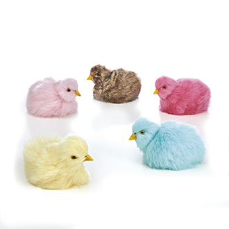 Kylling, liggende, kunstpels – 5CM, 5 ASS.