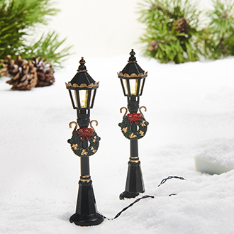 Lygtepæle, plastik, sort med krans (BATTERI) – 12CM, 2/SÆT