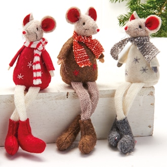 Mus, stof, m/hængeben- 17CM, 3 ASS.