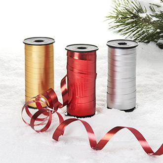 Polybånd, rød/sølv/guld, 10mmx50m – 3 ASS.